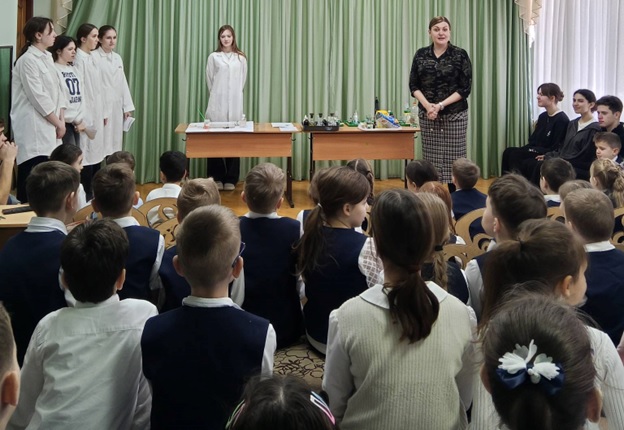 Увлекательное путешествии по миру науки началось с «Химического шоу», которое было организовано для младших школьников ученицами 8 и 10 класса под руководством учителя химии и биологии – Светланы Вячеславовны Выскребенцевой