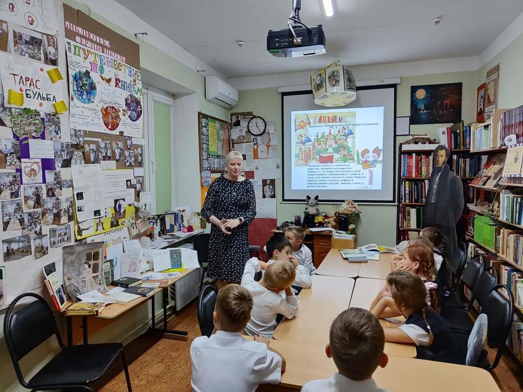 Имееются выставочные витрины, стелладжи для справочной литературы, проектор с экраном, один компьютер, подключение к интернету, два принтера